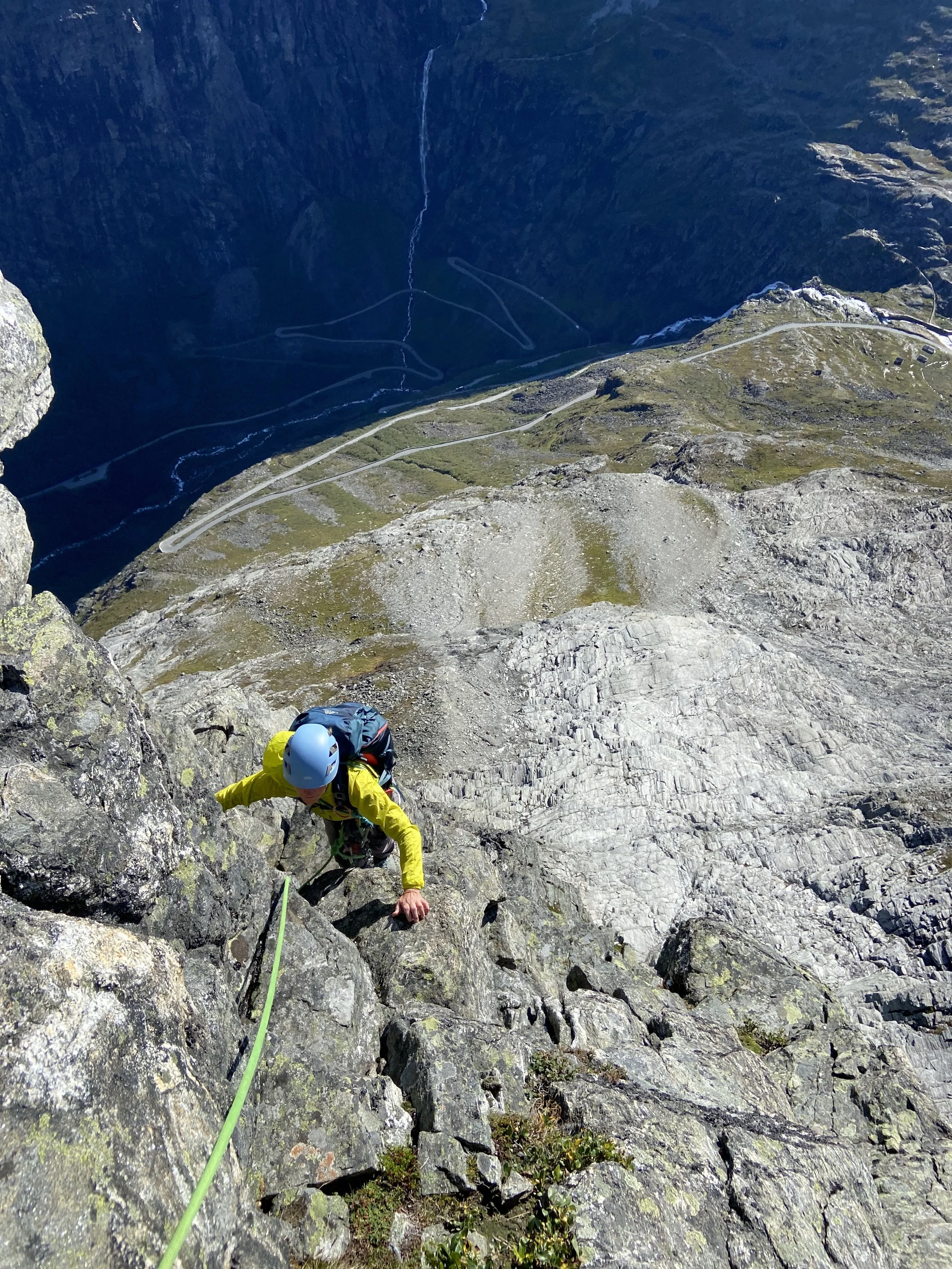 For de som har klatret litt før er Østryggen et bra mål. Den byr på flere taulengder med litt vanskeligere klatring høyt over Trollstigen.